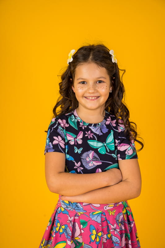 An absolute must-have in every child’s wardrobe! A lightweight and comfortable t-shirt with a slightly rounded hem and an extended back. Made from stretchy jersey, it’s the perfect companion for our shorts, pants, and leggings!