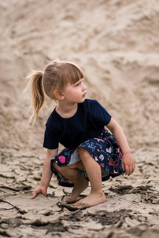 An absolute must-have for every child’s wardrobe! A lightweight and comfortable t-shirt, gently rounded at the bottom and lengthened at the back. Made of stretch jersey. The perfect companion for our trousers and leggings!
