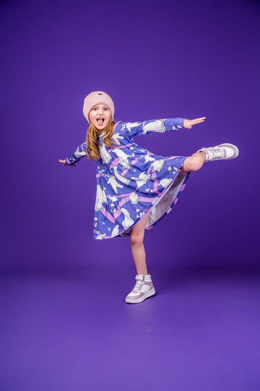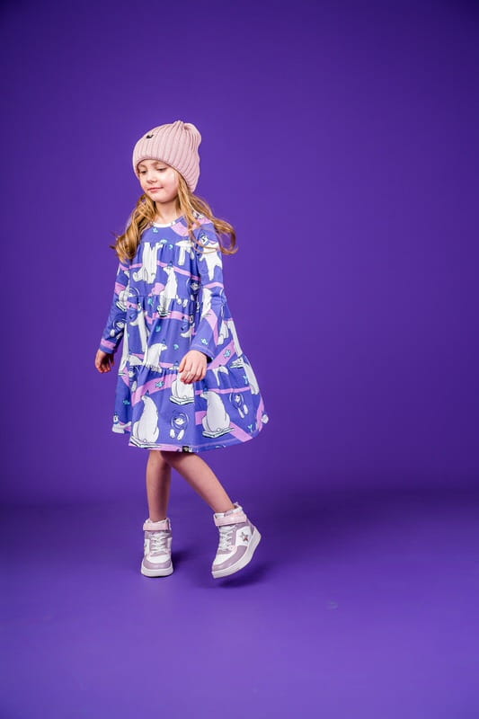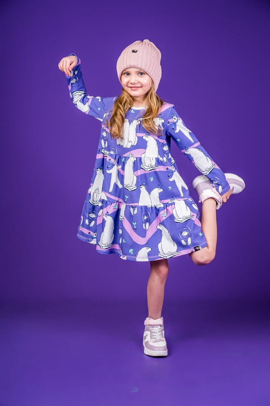 Sukienka marszczona Fioletowy Niedźwiedź Polarny
