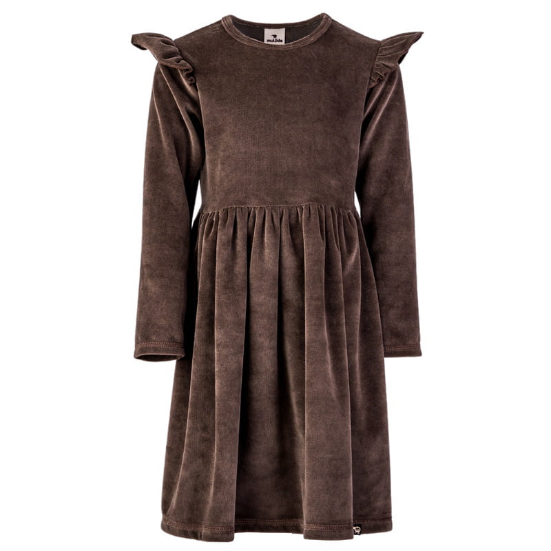 Welurowa sukienka z długim rękawem Czekoladowa