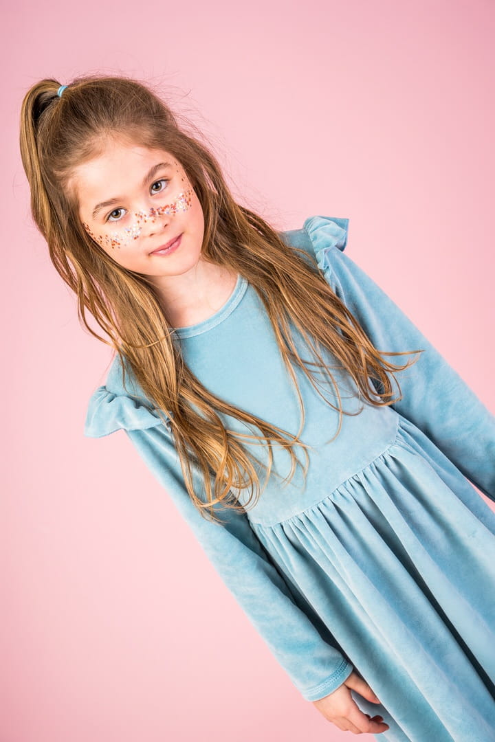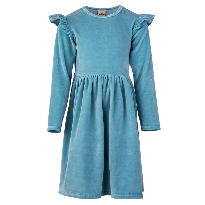 Welurowa sukienka z długim rękawem Niebieska