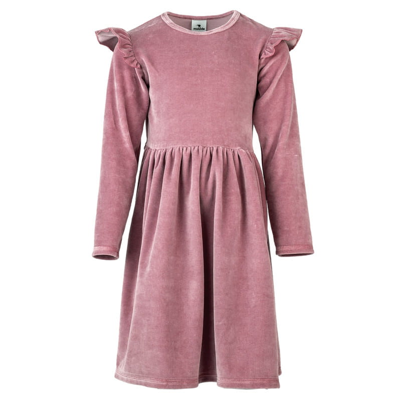 Welurowa sukienka z długim rękawem Brudny Róż
